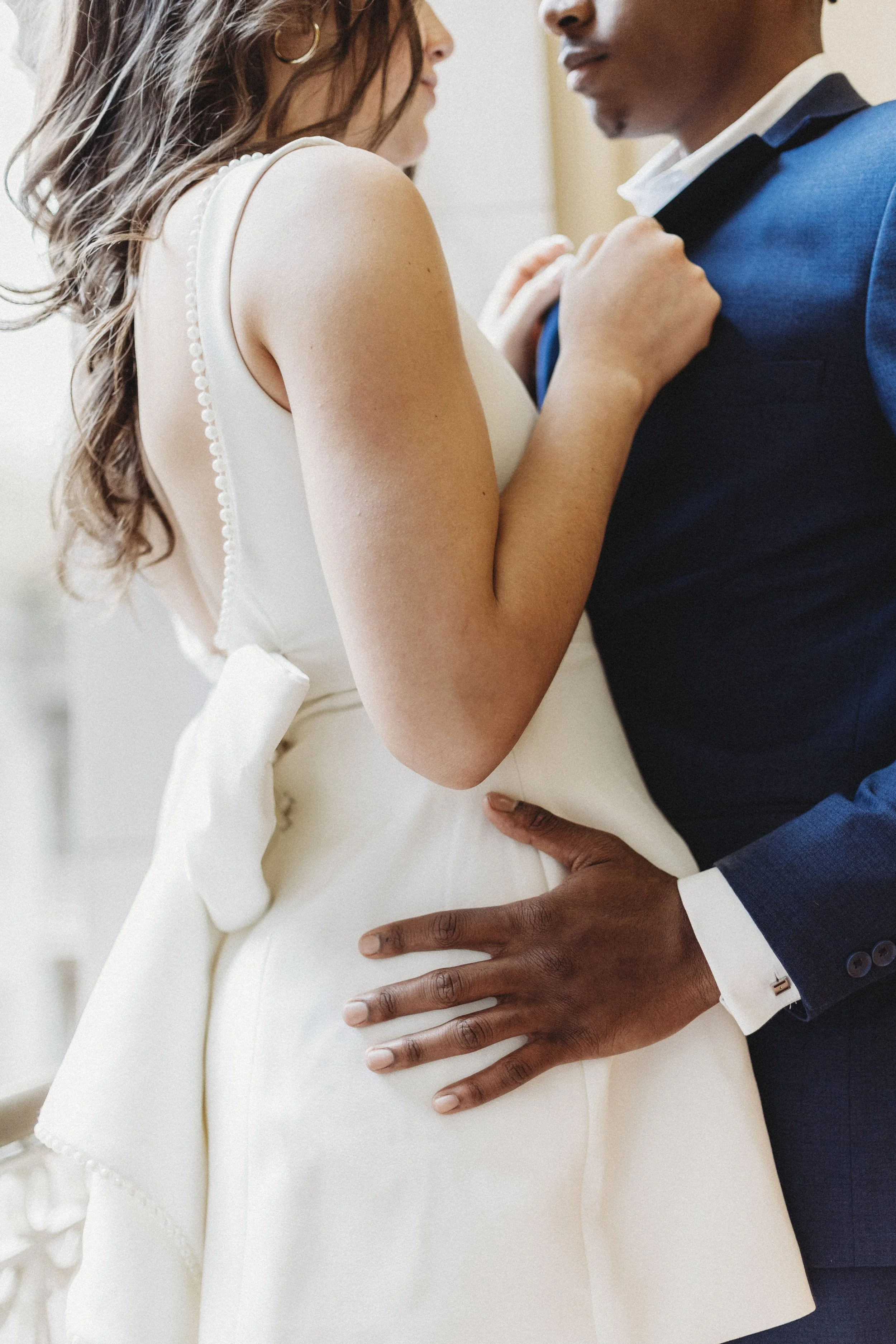 Hartford City Hall fit their vision so naturally because it carries that old-world charm without trying too hard. Every corner offers texture and depth, from the tall columns to the wide staircases, making it an ideal location for couples who want a refined, editorial look while still keeping things meaningful and personal.